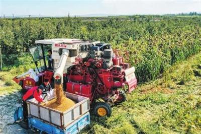 秋收时节,山西省万荣县万泉乡东丁村的高粱喜获丰收。村民们抢抓农时收割高粱,田间地头一派繁忙景象。 图为9月17日,山西省万荣县万泉乡东丁村村民将收获的高粱装车(无人机照片)。 新华社记者 曹阳摄