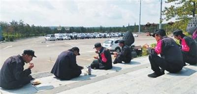 很多游客看到停车场的工作人员年龄偏大又那么辛苦,便向他们招手致意、竖大拇指、行军礼,还有的游客给他们递矿泉水、送水果、赠雨伞,让他们心里很温暖。