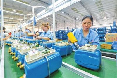 9月21日,工人在邯郸冀南新区一家燃气装备制造企业生产车间内工作。