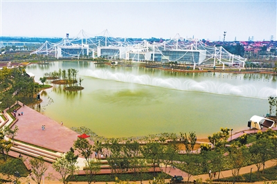 近日,以“山水邯郸,绿色复兴”为主题的河北省第四届园林博览会在邯郸市开幕。本届园博会所在地此前是一片工业废弃地。邯郸市通过采取生态修复进行综合整治,打造核心文化游览区、生态湿地保护区等7大功能区,以及13个汇集燕赵文化的城市展园。 新华社记者王晓摄