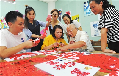 图为9月22日,湖北省襄阳市高新区东风社区居民参加剪纸兴趣培训班。 新华社记者 刘玉和摄