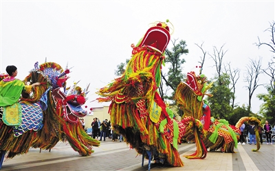 9月24日,河北省黄骅市民间艺人在第六届京津冀非遗联展上表演麒麟舞。