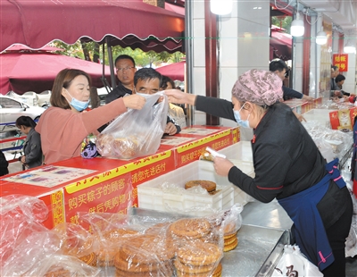 中秋将至,月饼热销。昨日,记者在位于向阳街的一家月饼销售店看到前来购买月饼的市民络绎不绝。据店主介绍,今年新推出的黄花月饼深受市民喜爱,每天的销量达到1000余个。 本报记者 戎禹仁 摄