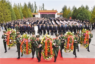 9月30日,我市党政军领导与社会各界代表来到市革命烈士陵园,举行烈士纪念日公祭活动,向革命烈士敬献花篮。 本报记者 张燕伟 摄