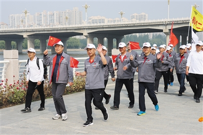 国庆前夕,中车大同公司组织千名员工在御河生态园开展主题为“世界大同与时代同行 祝祖国生日快乐”的健步行活动,喜迎新中国成立71周年。 本报记者 李冬宾摄