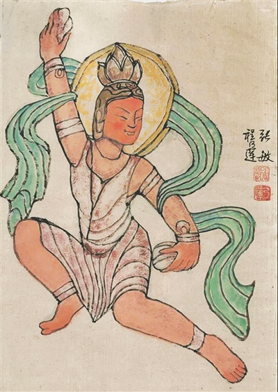 云冈石窟有大量伎乐飞天,她们手持各种器乐,仿佛正在动情演奏。据考证,云冈石窟造像现遗存历代彩绘痕迹。石窟初开凿到完成时期到底有没有彩绘?云冈石窟为数不多的双飞天, 她们俩俩相随,盘旋飞舞,有的共擎摩花宝珠,有的合托莲花宝盒,有的对面细语,有的双手合十。她们那缓缓飞行的姿态,完美的形体,活泼的神情,无不显示出勃勃生机。 程乃莲