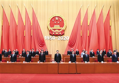 10月23日,纪念中国人民志愿军抗美援朝出国作战70周年大会在北京人民大会堂隆重举行。习近平、李克强、栗战书、汪洋、王沪宁、赵乐际、韩正、王岐山等出席大会。