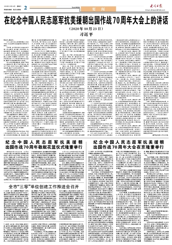 纪念中国人民志愿军抗美援朝出国作战70周年大会在京隆重举行
