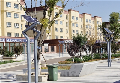 在转型汇智创新城汇智大街,60多组太阳能路灯在路两侧均匀分布,每组太阳能路灯有两个灯头,可以同时照亮路面中心和人行步道区域,展示出转型汇智创新城的创新特色。