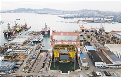 10月29日,我国自主建造的半潜式储油平台主体工程顺利完成。该储油平台最大储油量近2万立方米,将用于我国首个1500米深水自营大气田——陵水17-2项目,预计明年1月竣工交付。 新华社记者 王毓国摄
