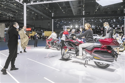 11月5日,人们在进博会上体验本田大排量摩托车。第三届中国国际进口博览会汽车展区集齐了世界排名前七的整车集团。德、美、英、日、韩、瑞典等国家的代表性汽车品牌悉数登场。