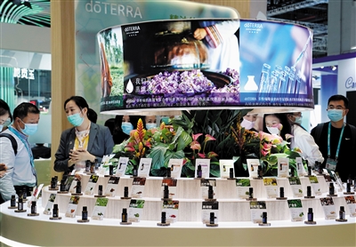 在第三届中国国际进口博览会的医疗器械及医药保健展区,多特瑞展台以轻柔芳香吸引了众多参观者。这家来自美国的精油公司已连续三年参加进博会。据介绍,多特瑞还将参展第四届进博会。 新华社记者 刘颖摄