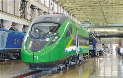 身披国槐绿外衣的“绿巨人”,全称为时速160公里动力集中复兴号动车组。