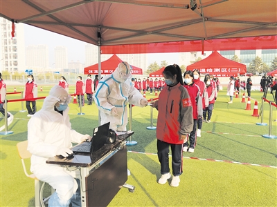 “某日9时,平城区在新冠病毒‘应检尽检’人群筛查中,核酸检测结果发现一例阳性……”11月16日上午9时30分,在市卫校,随着总指挥、副市长郭蕾铿锵有力的一声“开始!”大同市全员新冠病毒核酸采样检测应急示范演练拉开帷幕。