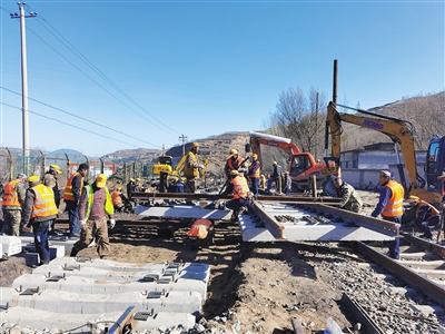 为确保冬季运输安全,晋能控股煤业集团铁路公司矿山铁路分公司根据季节特点,制定今冬明春应急预案,备全、备齐、备足冬季“三防”物资,坚决打好冬季“三防”战,对现场施工组织和管理实行重点盯控,全面加强冬季线路设备及人身作业安全管理。图为口泉沟N7-N9岔整组更换作业现场。杨秀红摄