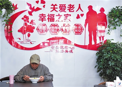 近年来,青海省西宁市城西区积极探索打造“沿街爱老幸福食堂”,通过招标方式引进本土知名餐饮企业,在其沿街门店中设置老年人就餐区,配备适老化桌椅,以“政府补一点、企业让一点、个人掏一点、社会捐一点”的模式,补贴惠民,满足老年人个性化就餐需求,方便老年人就餐。图为11月18日,在青海省西宁市城西区一家“沿街爱老幸福食堂”,老年人在吃饭。 新华社记者 张龙摄