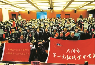 11月14日下午,作为大同一职中德育和思政工作室成立系列活动之一,山西省志工委主任、省巡讲团领队刘建成,大同市教育局党组成员、副局长王希术率领省学雷锋宣讲团队成员一行6人来到该校,宣讲中央办公厅文件精神、习近平总书记关于学雷锋志愿服务的指示精神,两位报告团成员王素娟、武钢分别做了题为《坚持常态学雷锋、志愿服务献爱心》《我行动、我弘扬、我传承,争做新时代的活雷锋》的报告,讲述了自己做善举的平凡小事,赋予了雷锋精神新的时代内涵,强调全校师生要不忘初心、牢记使命,让雷锋精神落地生根,走到哪里就将雷锋志愿服务队伍组建到哪里。报告感人肺腑、催人奋进,他们身体力行、践行雷锋精神的生动鲜活事例深深感染了参会师生,赢得了一阵又一阵热烈的掌声。同时他们被聘为大同一职中校外优秀辅导员。报告会上山西省志工委副主任兼宣传部部长高文丽宣读了《学雷锋志愿服务倡议书》。