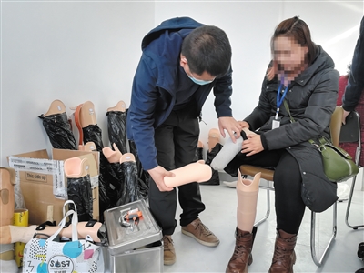 11月24日,灵丘县残联邀请省残疾人福利基金会工作人员为灵丘县肢体残疾人进行假肢安装。近年来,灵丘县残联积极开展扶残助残精准康复服务活动,今年再次申请“集善工程·幸福同行”假肢项目,免费为肢体残疾人装配假肢,帮助他们走出家门,走向社会。当日,共为19名肢体残疾人安装了假肢。 马明清摄