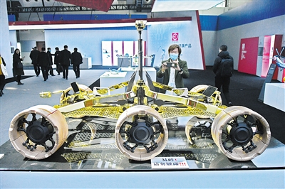 11月25日,参观者在2020年世界工业设计大会上观看载人月球车概念设计模型。