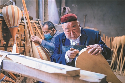 “300多年前,加依村村民就开启了乐器制作历史。”新和县文化馆馆长司丽丽介绍,当前村里有1位国家级非物质文化遗产传承人、5位自治区级非物质文化遗产传承人。