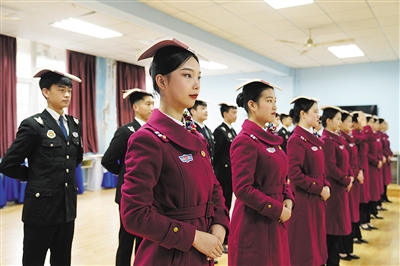 12月3日,在重庆市北碚区职业教育中心,航空服务专业的学生进行形体训练。