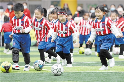 安徽省淮北市第二实验幼儿园是一所“全国足球特色幼儿园”。该园把足球列入幼儿园体育课教学内容,通过开设幼儿足球趣味练习、足球游戏等特色课程,向孩子们传授足球基本知识和技巧,从小培养孩子们对足球的兴趣,让他们感受足球运动的魅力,健康快乐成长。