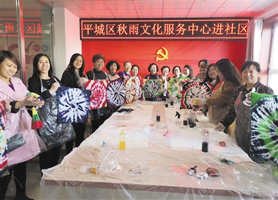 在政府向社会力量购买的服务中,古筝表演、茶艺展示、书法学习、传统扎染……群众文化活动新模式、新方法、新机制引领着平城区 “政府主导、社会组织、群众参与”的公共文化活动运作模式,形成了全民共建共享的文化发展新局面。家住柳港园的李女士说:“在家门口学习国画,和楼上楼下的邻居们一起学习,感觉很幸福。”解决独居、高龄老人的生活问题,一些老旧小区较多的街道纷纷购买这样的服务满足辖区居民的需求,排查安全隐患、提供上门维修服务,只为老百姓的生活越过越好。