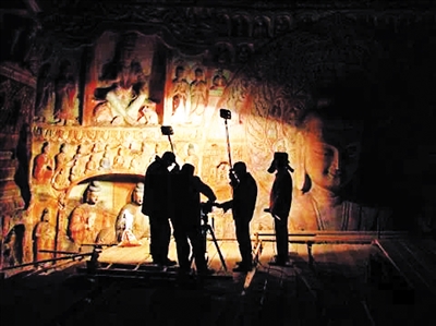 《“新”云冈》运用逆光拍摄手法,以剪影形式展现了云冈文物保护工作者在寒冷的洞窟中采集影像数据资料的真实场景,从一个侧面反映出“云冈人”的日常工作状态和敬业精神。画面中心的亮光与四周暗影形成强烈反差,具有很强的艺术感染力。