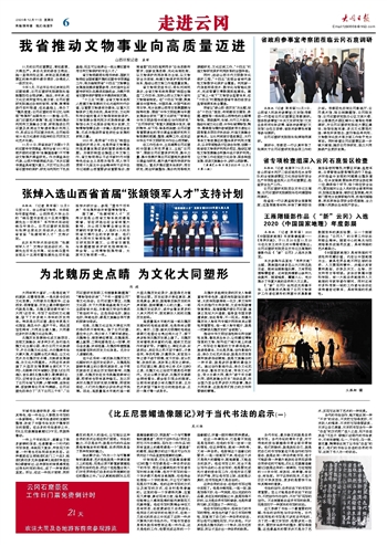 本报讯 (记者 梁有福)2020《中国国家地理》年度影像盛宴——《寻声天地》,于11月20日至11月29日在北京王府井王府中環看楼展出。云冈石窟研究院党总支书记王雁翔的摄影作品《“新”云冈》入选本次展览。