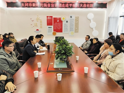 山西在全省开展党的十九届五中全会精神进基层万场大宣讲活动,将理论宣讲与文艺表演、惠民服务、公益活动等结合起来。截至目前,已开展宣讲1万多场,受众近200万人次。在山西省大同市大齿社区,大同市新时代强音宣讲团成员贾万新正给这里的居民进行宣讲,她将全会精神和居民实际相结合,举例子、讲故事,现场掌声阵阵。“国家政策和我们生活息息相关,感觉日子更有奔头了!”48岁的居民王晓丽说。