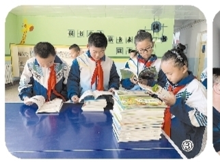 图③ 大同市向奇台农场小学捐赠的图书还未上书架,就吸引着孩子们前来翻阅。