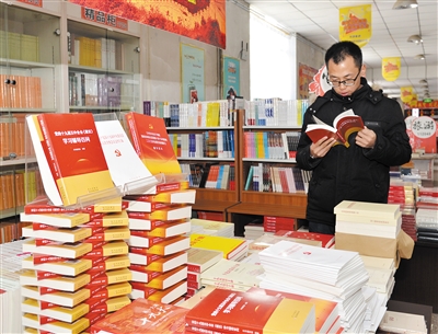 12月14日,记者在新华书店见到,该书店大厅最显著位置专门设置了学习贯彻党的十九届五中全会精神相关书籍销售展台,摆放了多种党的十九届五中全会文件及辅导读物,吸引了各行各业人员前来购买。 本报记者 戎禹仁摄