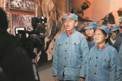研学当日,讲解导师带领学生参观展馆内所展示的当年战役中缴获的武器、装备,一张张图片,一件件旧物,无不彰显着中华民族不畏列强、不甘屈辱的抗日精神,从抗战初期的“国难当头,团结御侮”到抗日民族统一战线建立,直至取得平型关大捷的胜利,最后到南广场的雕塑和纪念碑凭吊英烈。在导师的生动讲解下,学生们似乎还能听到当年抗日冲锋枪响。