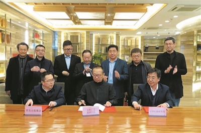 中国文联副主席、中国民协主席、山东工艺美术学院院长潘鲁生,云冈石窟研究院院长张焯,青岛出版集团党委书记、董事长王为达,分别代表三方签署协议并致辞。青岛出版集团党委副书记、总经理贾庆鹏主持签约仪式。