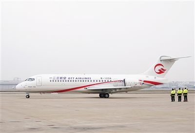 12月28日,执飞一二三航空首航航班的国产飞机ARJ21前往指定区域,准备起飞。 当日,东航新成立的一二三航空有限公司(简称“一二三航空”)首航,执飞首航航班的国产飞机ARJ21从上海飞往北京。一二三航空首航标志着ARJ21的7家用户全部投入民航运营。 新华社记者 丁汀摄