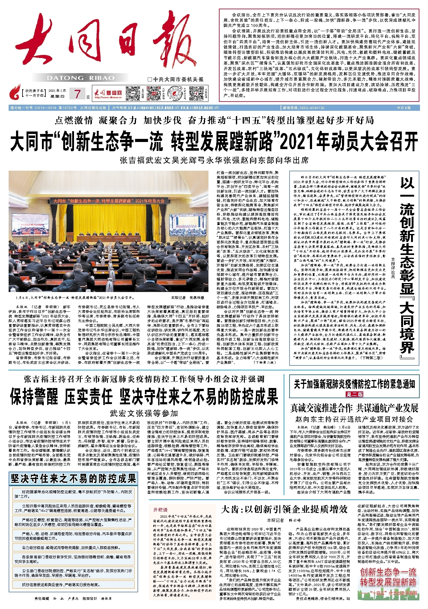 大同市“创新生态争一流 转型发展蹚新路”2021年动员大会召开