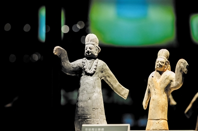 北魏平城时期,都城平城成为当时的国际化大都市,胡汉商人、外国使节、僧侣、艺人潮涌而来,推动商贸发展的同时,也促进了文化艺术的交流传播,乐舞文化也不例外,在这一时期达到空前繁盛,在北魏墓葬的壁画、雕塑、陶俑中,可以看到大量的乐舞伎形象。图为出土于大同城东原雁北师院北魏墓群的女舞俑。