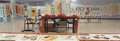从正月初二到正月十六,金牛艺博园艺术总监袁俊一直在忙碌着。他和本地工艺美术大师、书画家马真、柴勇、张存祥、张革、薛润福、仝世明、刘玉堂等走进华林新天地,现场挥毫泼墨,现场制作工艺品,为市民送去新春祝福。