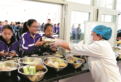 推进食堂供餐。组织实施食堂建设项目,新建、改扩建学校食堂73所,各县寄宿制学校全部采取食堂供餐模式。