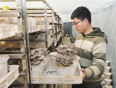 近日,记者在云州区瓜园乡西子峰村菌菇种植基地黄花晾晒大棚里看到,工人们正在忙着培育菌菇,并将采摘下的新鲜香菇装袋。该区在抓好黄花管理、采收、加工、销售的同时,深入挖掘黄花产业内在潜力,在盘活黄花采收后的闲置场地和黄花地上做文章,他们选中了食用菌产业,开始打造“一花一菇两业并进、一地两种抱团发展、一棚两用四季受益”的产业发展新格局。 本报记者 戎禹仁摄