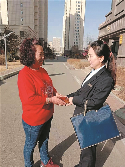 说起与业主之间发生的感人故事,这些姑娘们如数家珍。年轻的楼管家贾丽宏对自己管辖的业主特别上心,在日常的走访中发现了以拾荒作为补贴家用的吕姨生活较为拮据,心中就想着如何帮帮她。当得知居住在小区内的柴大爷总是走丢,急需要找一名保姆时,小贾顿时想到了吕姨。在她的介绍下,吕姨现在成了柴大爷的保姆。柴大爷有了吕姨的悉心照顾,再也没有迷过路,吕姨也有了一份不错的收入,两个家庭都对小贾赞不绝口。