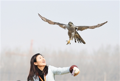 3月14日,沈阳市森林资源监测中心和沈阳猛禽救助中心在沈阳鸟岛组织开展2021年首次猛禽放飞活动。图为,沈阳猛禽救助中心志愿者将救助的苍鹰进行放飞。 新华社记者 杨青摄