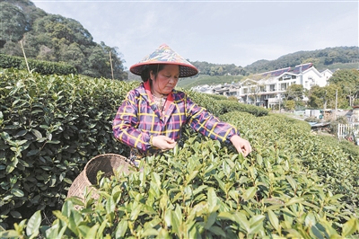 3月23日,杭州梅家坞村的茶农在采摘西湖龙井“明前茶”。
