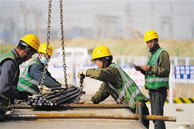 3月30日,中铁十一局的工人在河北雄安新区容东片区建设市政配套设施。