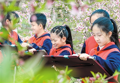 3月31日,邯郸市邯山区雪驰小学的学生在田间写生。当日,河北省邯郸市邯山区雪驰小学开展“田间课堂”主题活动,学生们走进田间写生,用手中的画笔描绘春日美景。 新华社记者 王晓摄
