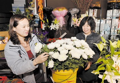 随着文明祭扫的推广,用鲜花缅怀已故亲人成为不少人的选择。临近清明节,花市上祭扫用的鲜花出现销售小高峰。3月31日,记者在几家鲜花销售门店内看到,商家为迎接清明节销售高峰做足了准备,菊花和百合花已经摆在店内显眼位置。