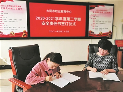 学校的安全工作是学校工作的重中之重,是构建和谐校园、顺利开展教育教学的基本保障。为确保全校师生安全和校园和谐稳定,避免安全事故的发生,营造文明、和谐、安全的育人环境,大同市职业教育中心始终把安全工作放在首位,常抓不懈。近日,大同市职业教育中心在学校会议室举行2020—2021学年第二学期安全责任书签订仪式,并在当日开展防震应急疏散演练活动。