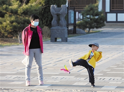 随着我市绿化面积不断增加,市民休闲去处越来越多。近期,明堂公园内鲜花盛开,优美的景色引来市民感受春的气息。图为昨日市民带着孩子在明堂公园里嬉戏玩耍。 本报记者 韩堃摄