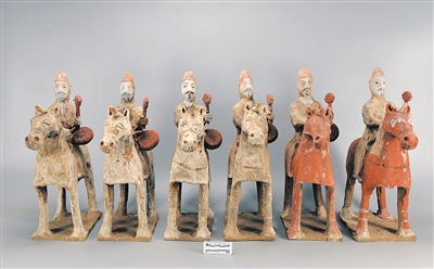 陕西西安少陵原十六国大墓出土的鼓吹仪仗陶俑(资料照片)。