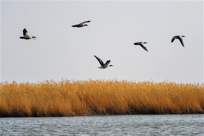 近日,随着天气转暖,位于内蒙古阿拉善盟额济纳旗的居延海湿地迎来了大批候鸟。居延海是我国第二大内陆河黑河的尾闾湖,随着黑河分水工程的实施,曾经干涸的东居延海已连续17年未出现干涸,水域面积稳定在40平方公里左右,从这里迁徙过境的候鸟种类和数量也不断增加。